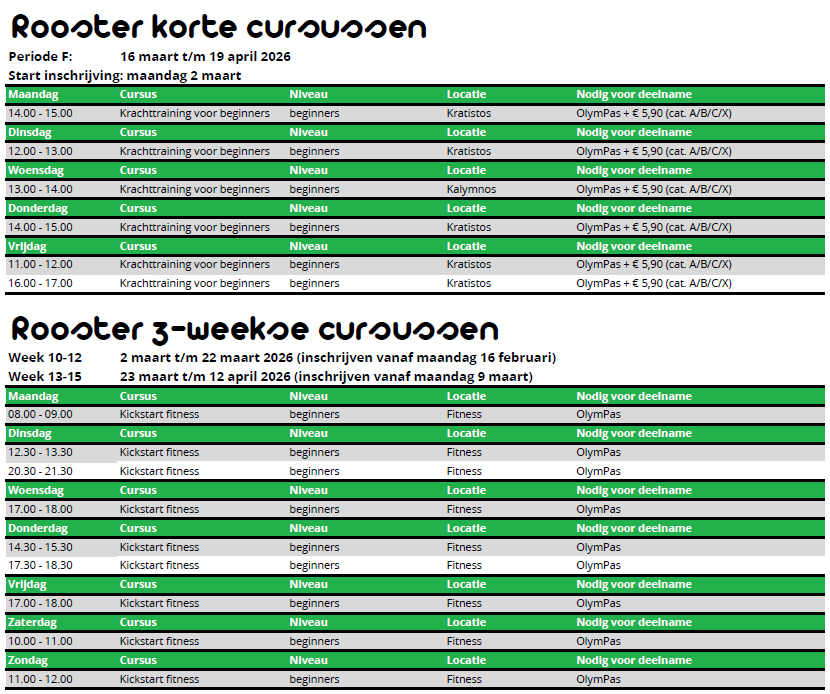 Rooster cursussen