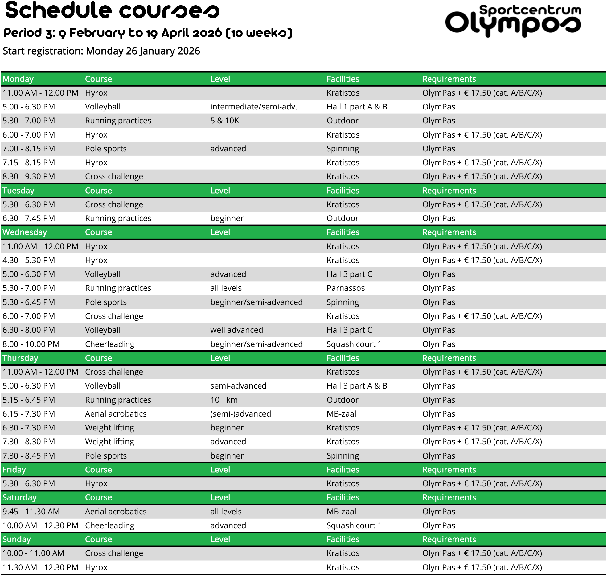 Course period 3 runs from Monday 9 February to Sunday 19 April 2026 (10 weeks).