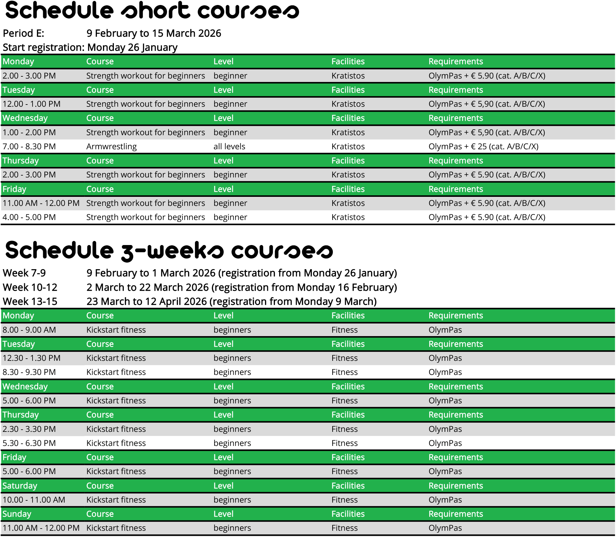 Course period E runs from Monday 9 February to Sunday 15 March 2026 (5 weeks).