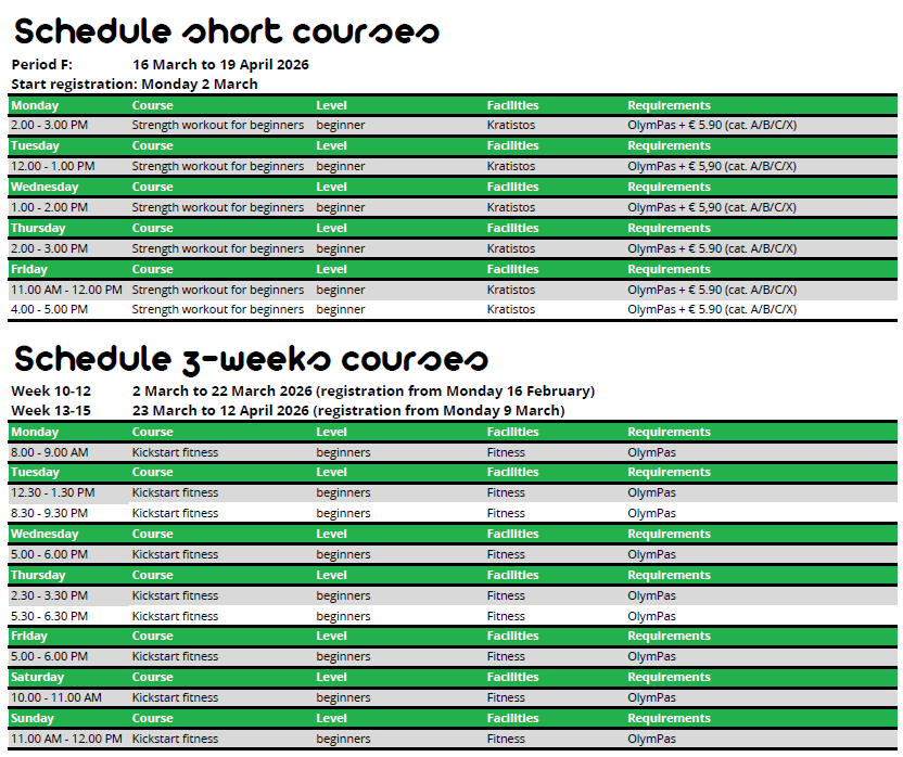 - Rules regarding registration for courses and how to unsubscribe from a course or a single course lesson