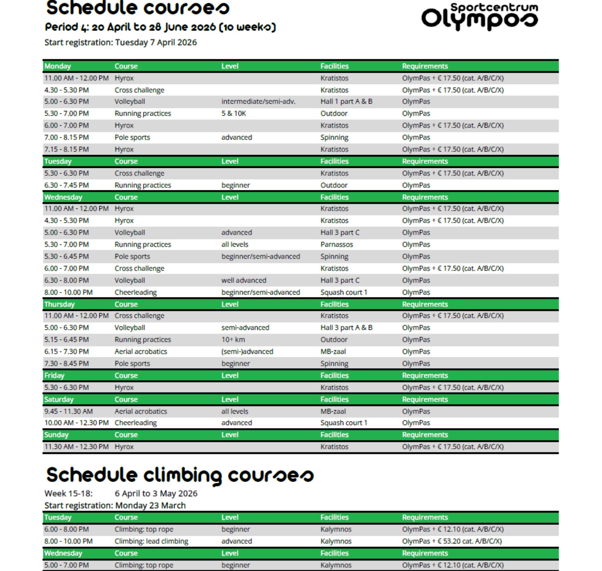 Course period 4 runs from Monday 20 April to Sunday 28 June 2026 (10 weeks).