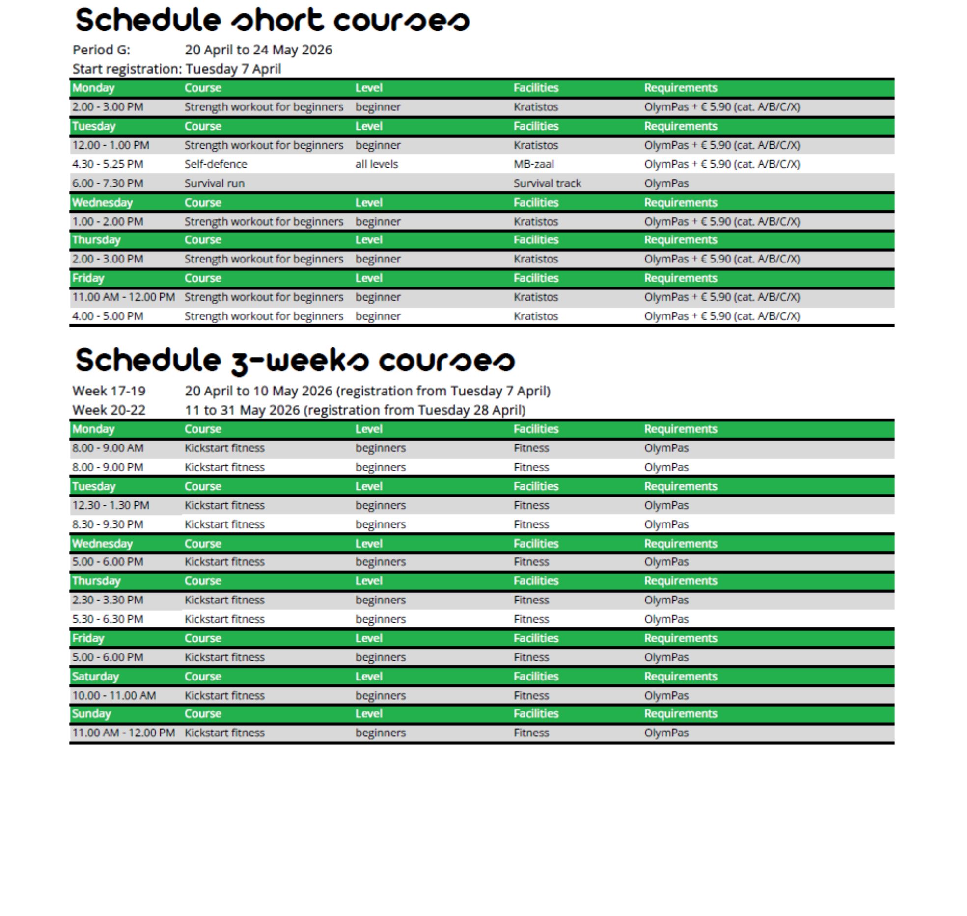 Click here to register for a course of period 4 or G from Tuesday 7 April, 9 AM
