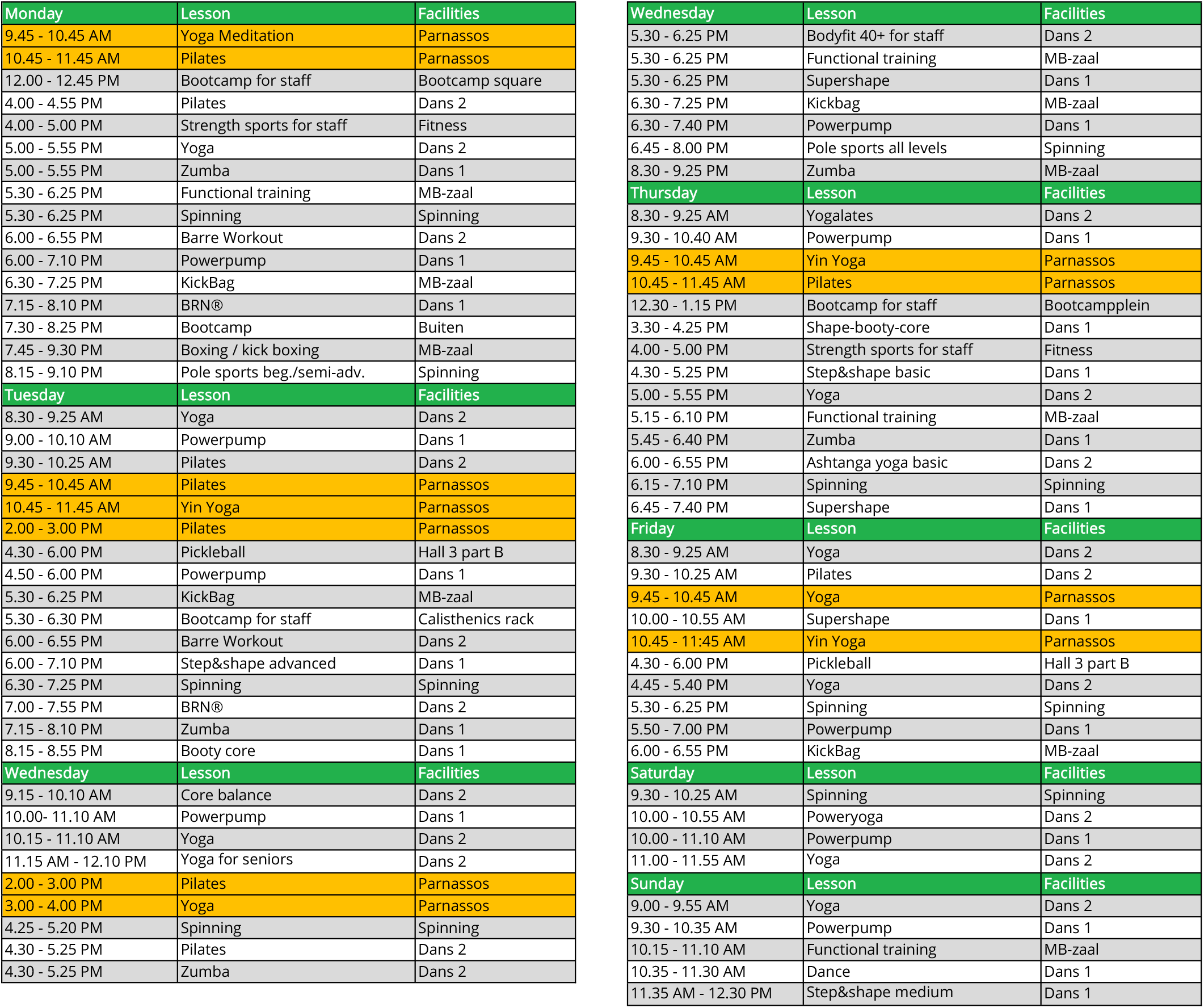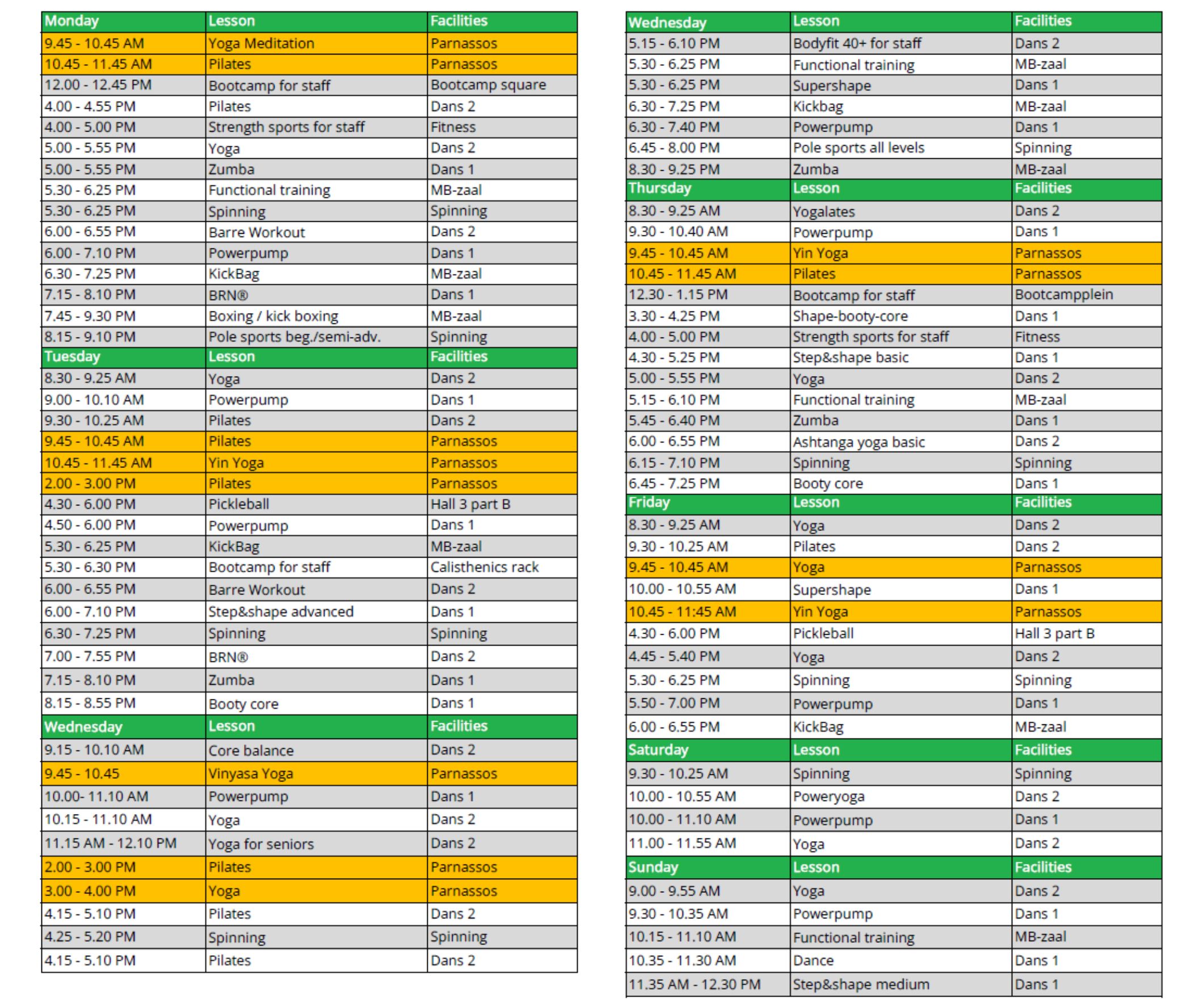 Group lessons are available all year round, with the exception of public holidays. During the Christmas holidays and the summer a different schedule applies. The group lessons schedule may be subject to changes. This page always shows the up-to-date schedule. An OlymPas is required if you want to participate in group lessons.